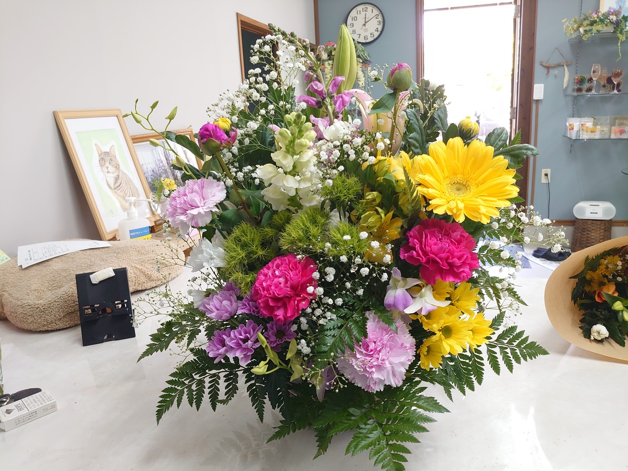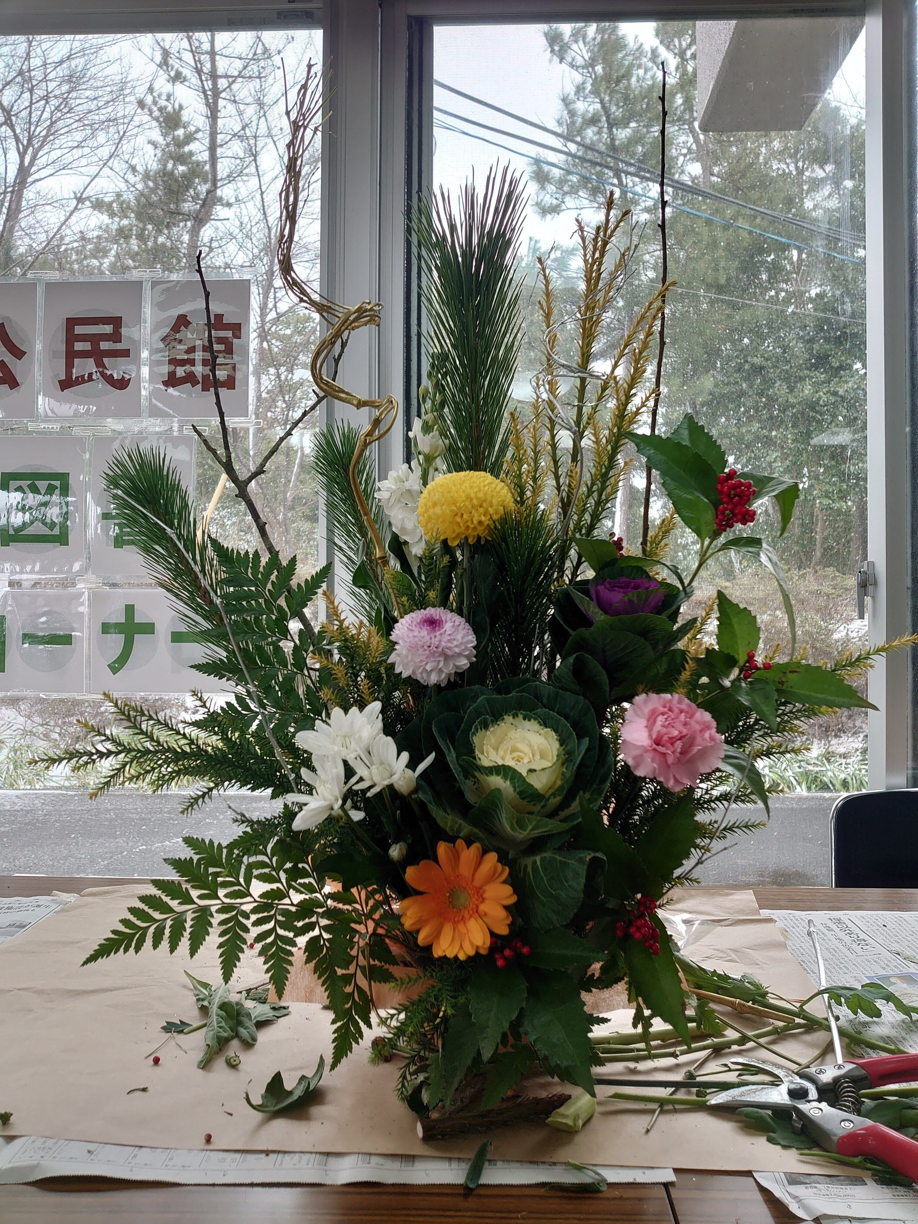 ◆商品内容:松竹梅入り生花アレンジ(カゴ入り)